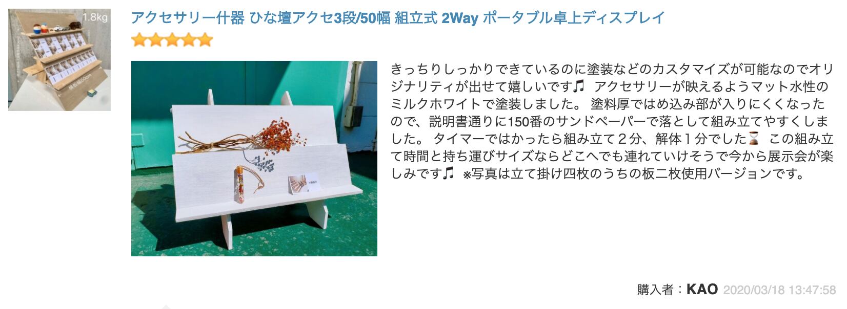 当店の別サイト上に投稿されたレビューを転載します。参考ください。